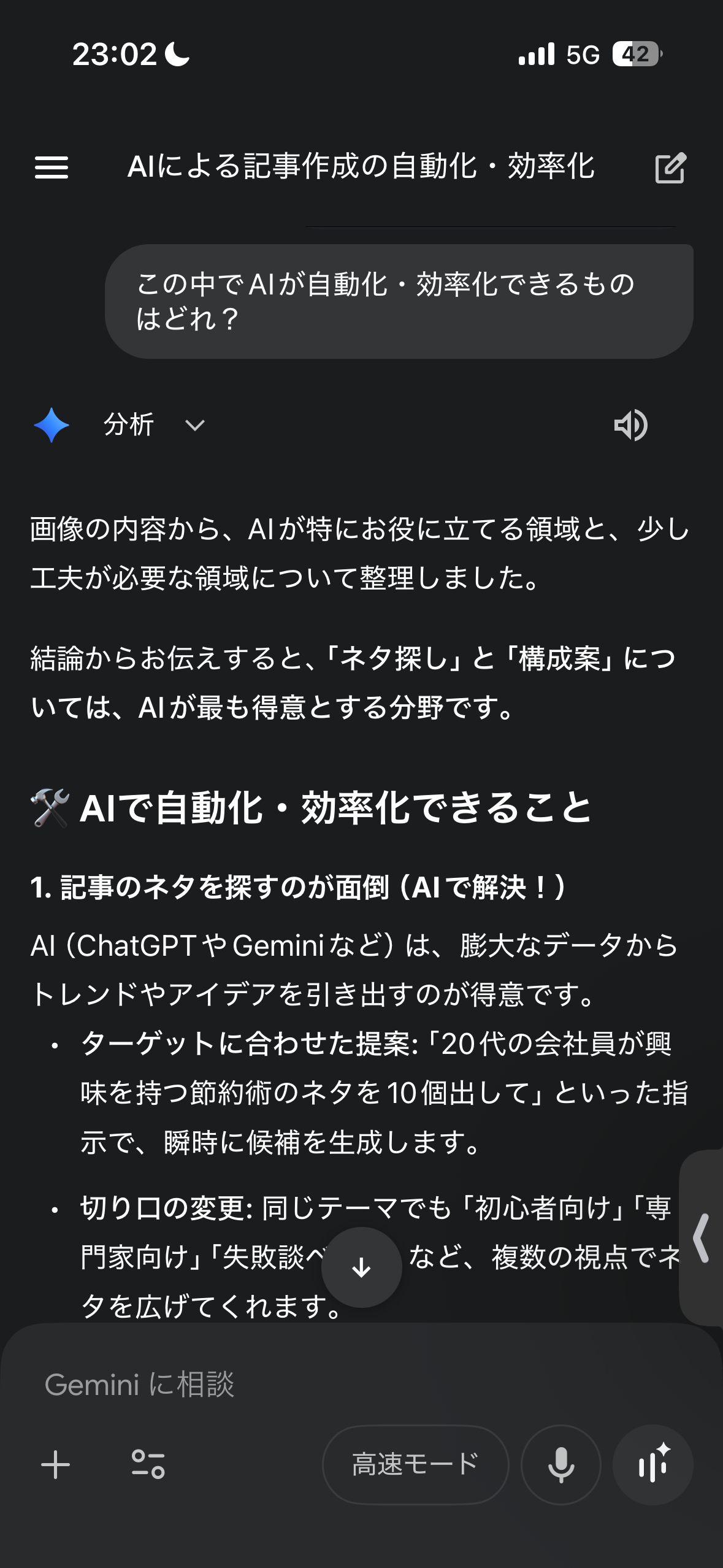 - Step 2: そのメモをGeminiに貼り付け、「この中でAIが自動化・効率化できるものはどれ?」と聞く。