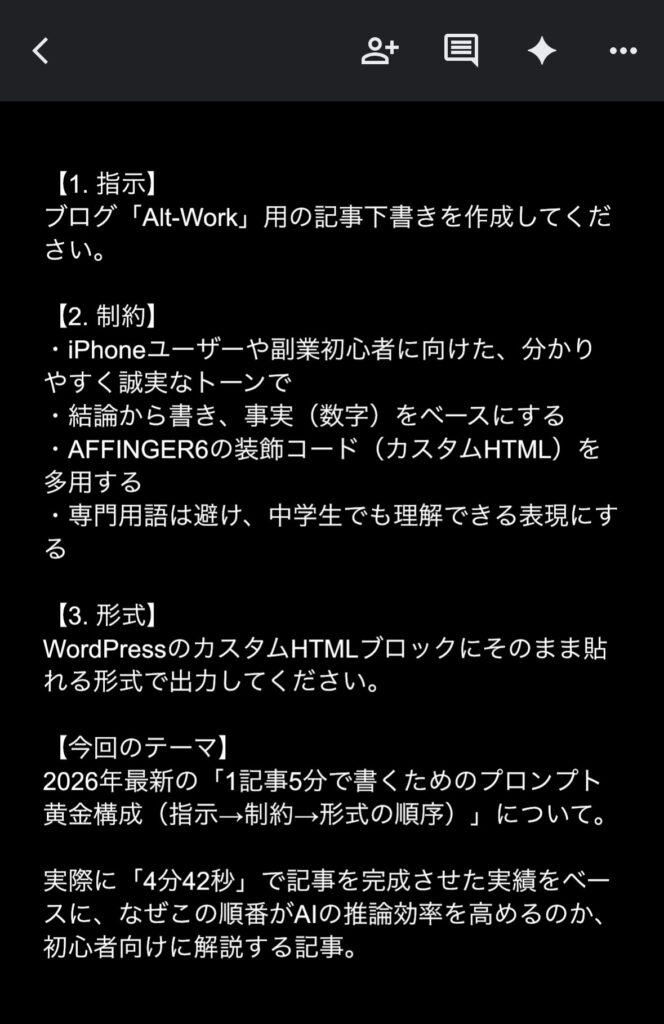 3. iPhoneで今すぐ使える!「4分台執筆」の黄金プロンプト構成